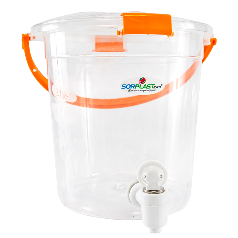 Dimensiones: Alto con tapa y sin manija 24 cm – Diámetro superior sin orejas 25 cm – Diámetro inferior sin orejas 19 cm / Grifo: Largo 6 cm