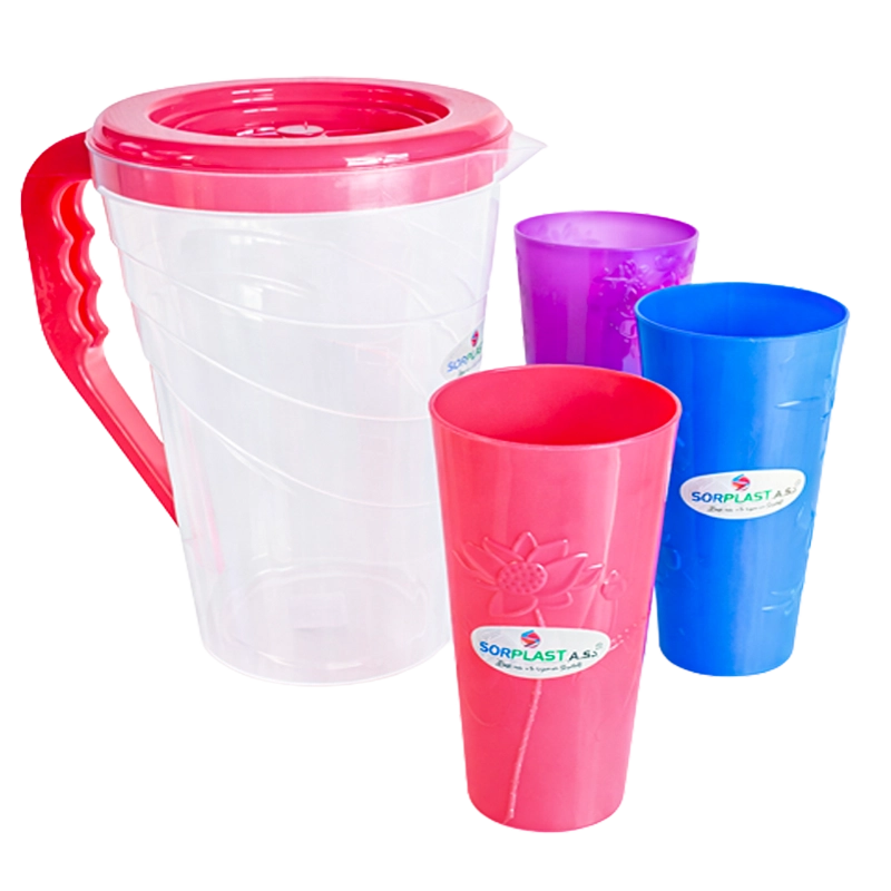 Dimensiones:Jarra: Alto con tapa 22 cm – Diámetro superior sin manija 16 cm – Diámetro inferior sin manija 10 cm / Vasos: Alto 14 cm – Diámetro superior 8 cm – Diámetro inferior 6 cm